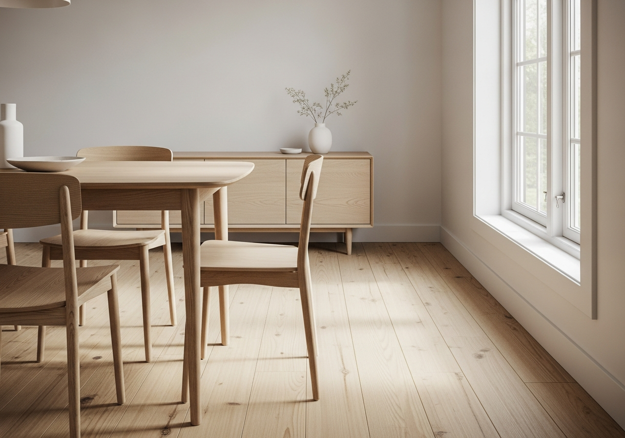 Dlaczego skomplikowane, ciężkie meble są błędem w aranżacji wąskiej jadalni w stylu skandynawskim?