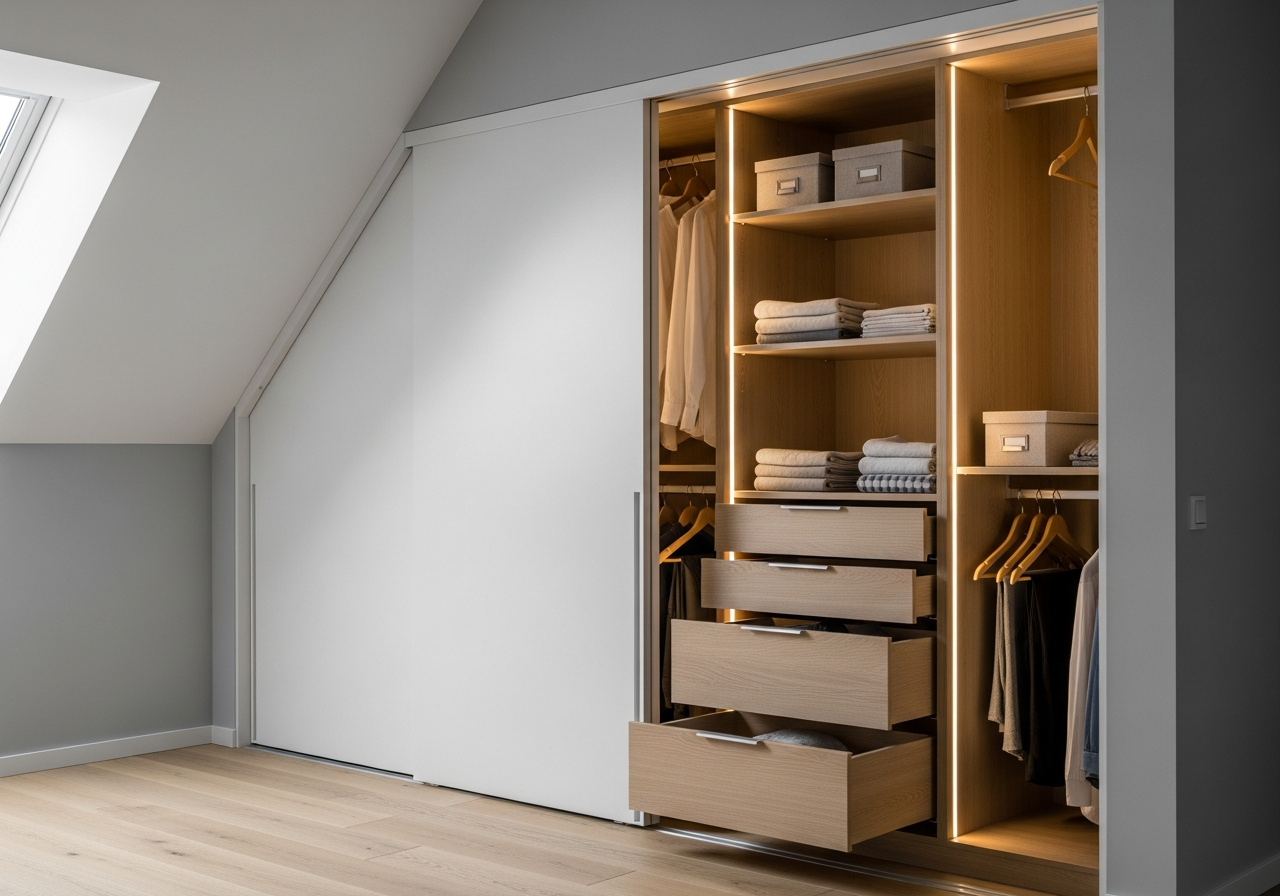 Jak praktycznie zagospodarować wnętrze szafy pod skosem?
